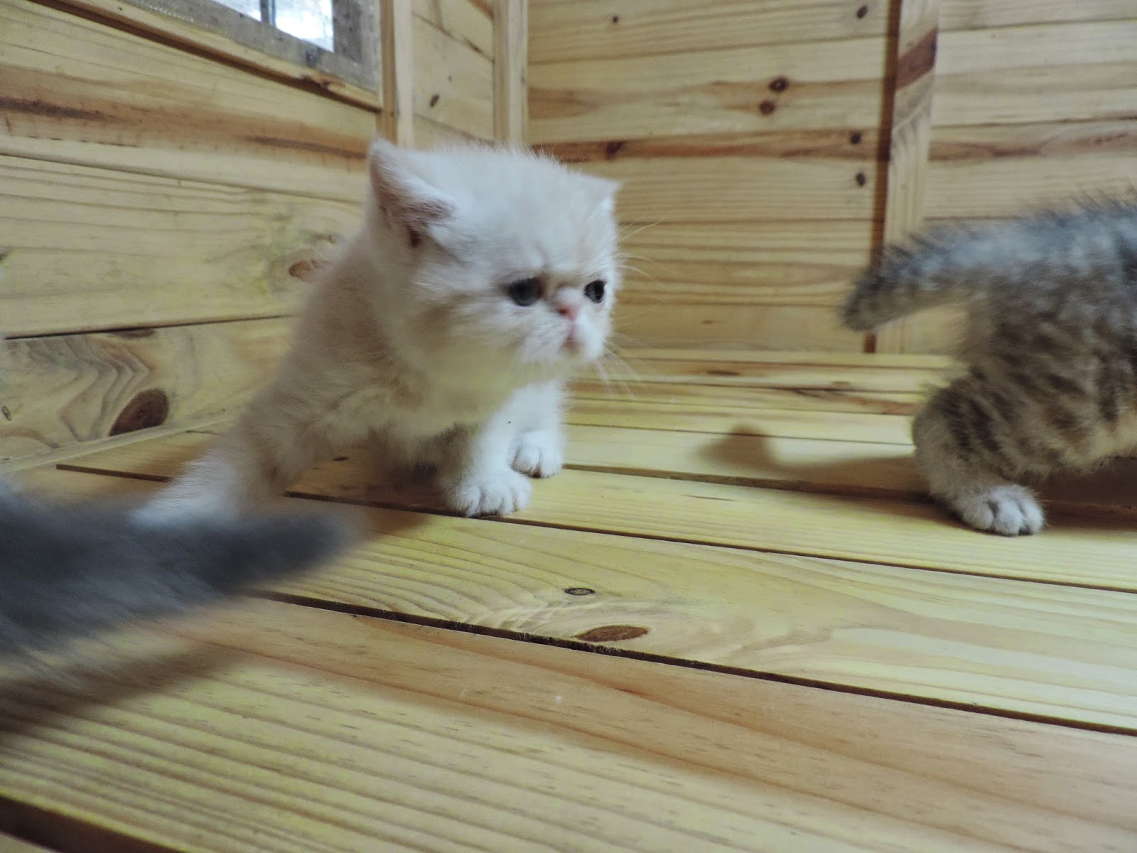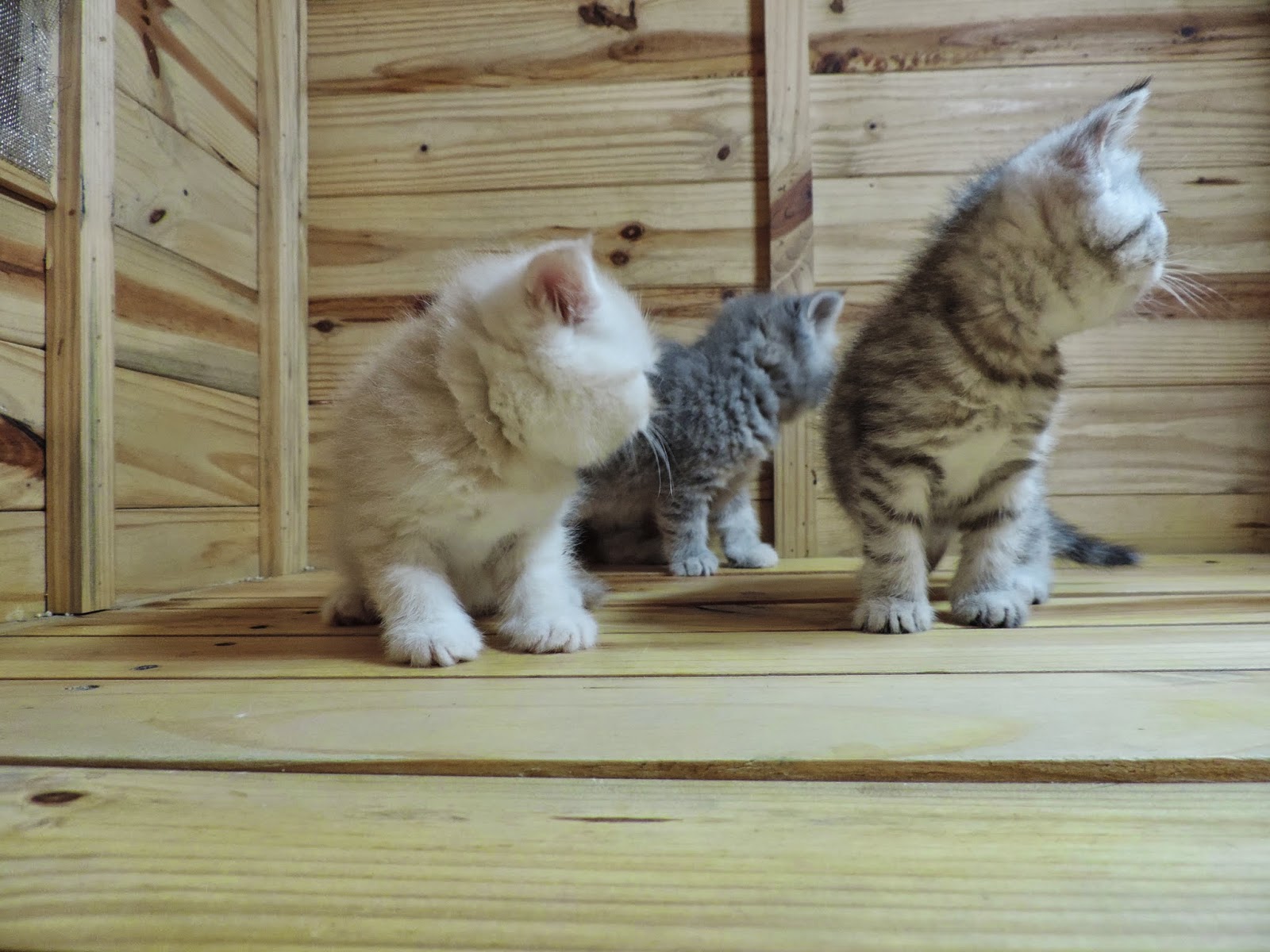 都Buddy仔和銀虎女(橙皮紋)質異國短毛貓BB3!一胎三隻,有藍虎女(已訂),忌廉仔和原來係銀虎女才對,已個多月大了,牠們都努力飲奶,而且正努力學習食乾糧,雞肉及飲水,還隻隻BB都自已懂得去廁所,貓媽媽橙皮紋真是有家教了!牠們都成長得肥肥白白,非常活潑可愛,手腳粗壯,一字鼻,面圓圓,樣子非常可愛,優質遺傳,可預而不可求!大約六月尾左右可帶牠們回家,可預訂!包第一針及杜蟲!有短片和相片和大家分享一下先!