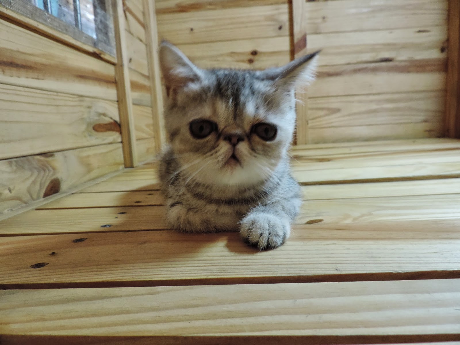 Buddy仔和銀虎女(橙皮紋)質異國短毛貓BB9!(銀虎女) ,一胎三隻,有藍虎女(已訂),忌廉仔(已售)和銀虎女,出生日期為16.4.2014,已二個多月大了,已打了第一針及杜了蟲。牠們都喜愛食乾糧,雞肉及飲水,還食得非常好,體重也每天增加,還隻隻BB都自已懂得去廁所!牠們都成長得肥肥白白,非常活潑可愛,手腳粗壯,一字鼻,面圓圓,樣子非常可愛,優質遺傳,可遇而不可求!最快可即時帶牠們回家,可預訂!每星期六會上載當日的短片和相片,可全程監察小貓的成長過程直至到新主人手中!有興趣可WhasApp XXX95284 查詢。