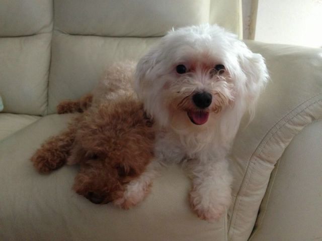 兩隻可愛小狗需要一個愛狗之人收養.Bon Bon (白色魔天使), Tay Tay (啡色貴婦狗),
